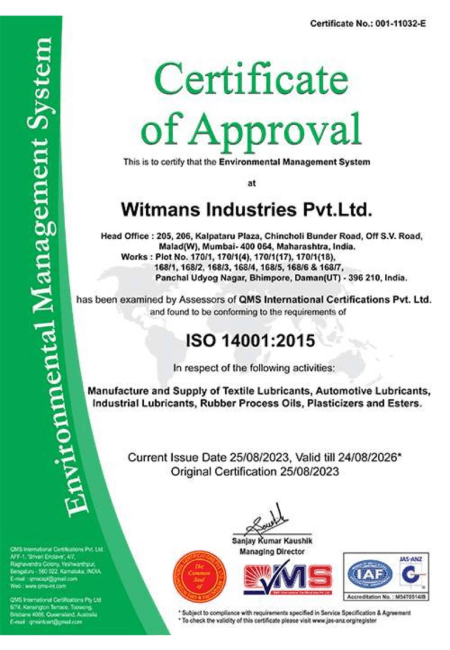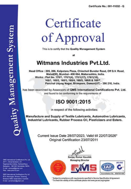 As a leading manufacturer of Speciality Lubricants, Textile Conning Oils & Spin Finishes, Process Oils, Plasticizers, Industrial Paints, and Protective Coatings, WITMANS INDUSTRIES PVT. LTD. combines deep technical knowledge, proven expertise, and extensive experience to solve its customers’ toughest production challenges.